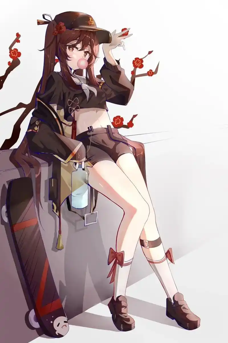 光脚的胡桃,不怕涩涩的旅行者#原神# 画师:hle
