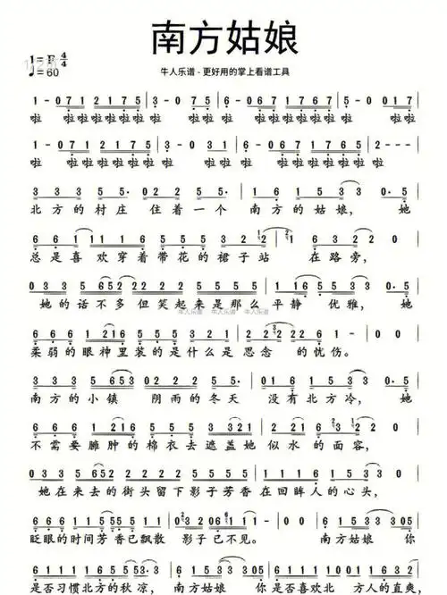 南方姑娘简谱