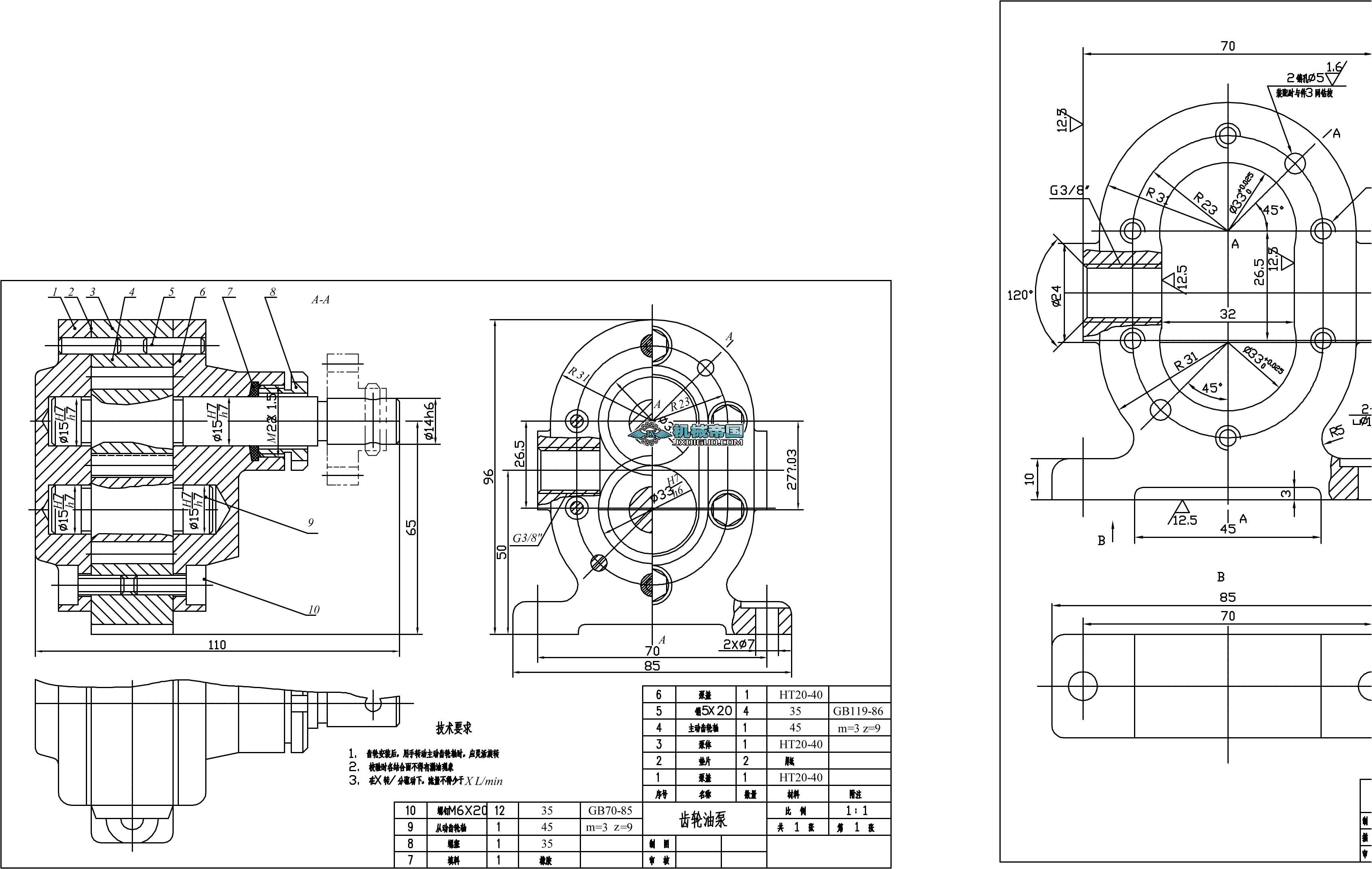 如图所示齿轮油泵的装配图中,尺寸70属于( ).