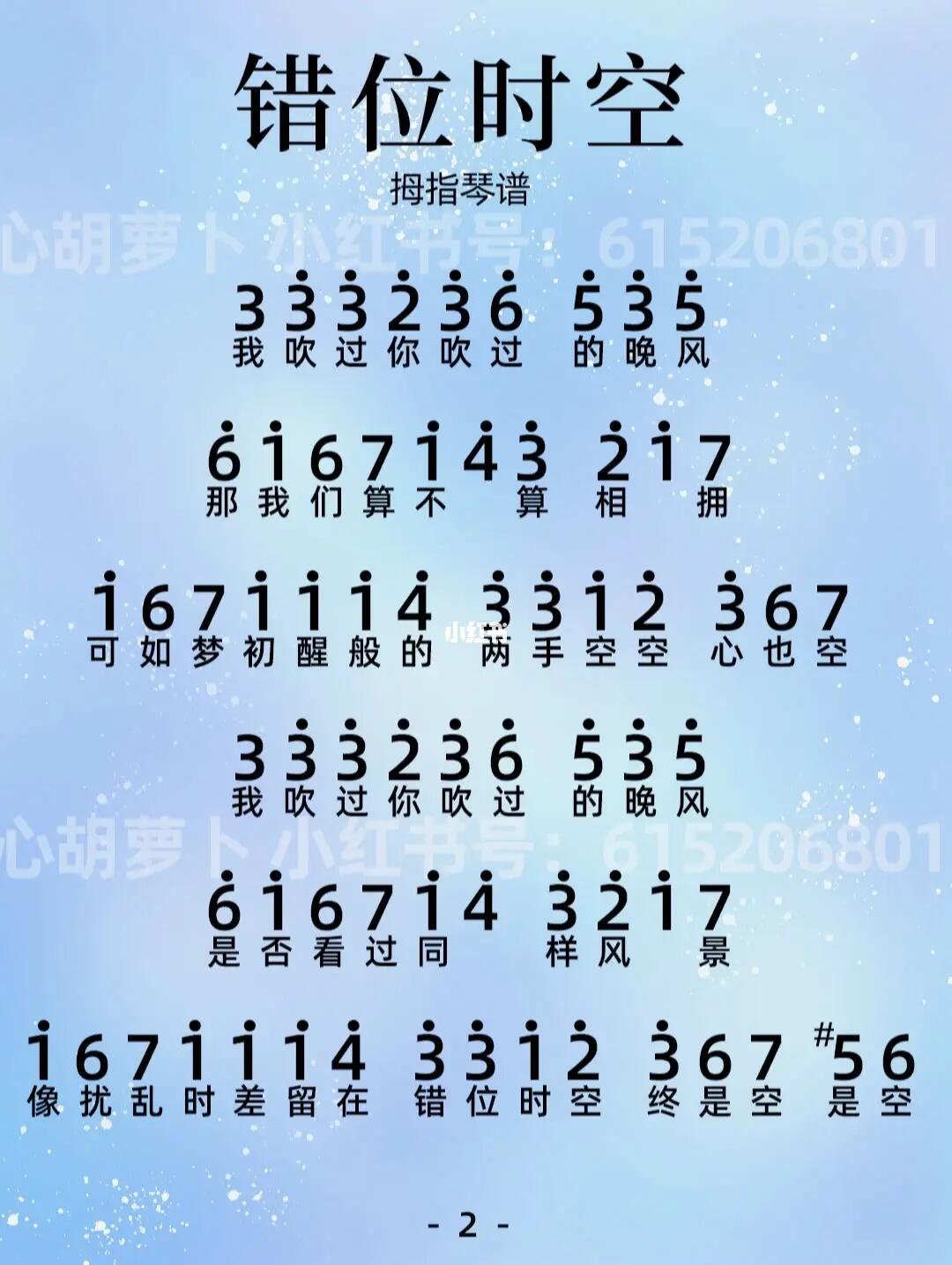 错位时空拇指琴简谱