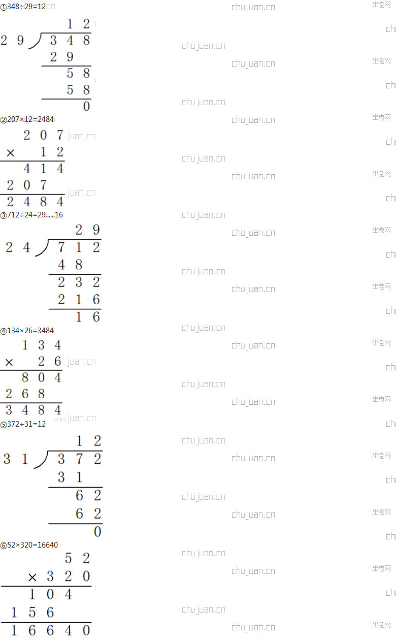 列竖式计算 答案