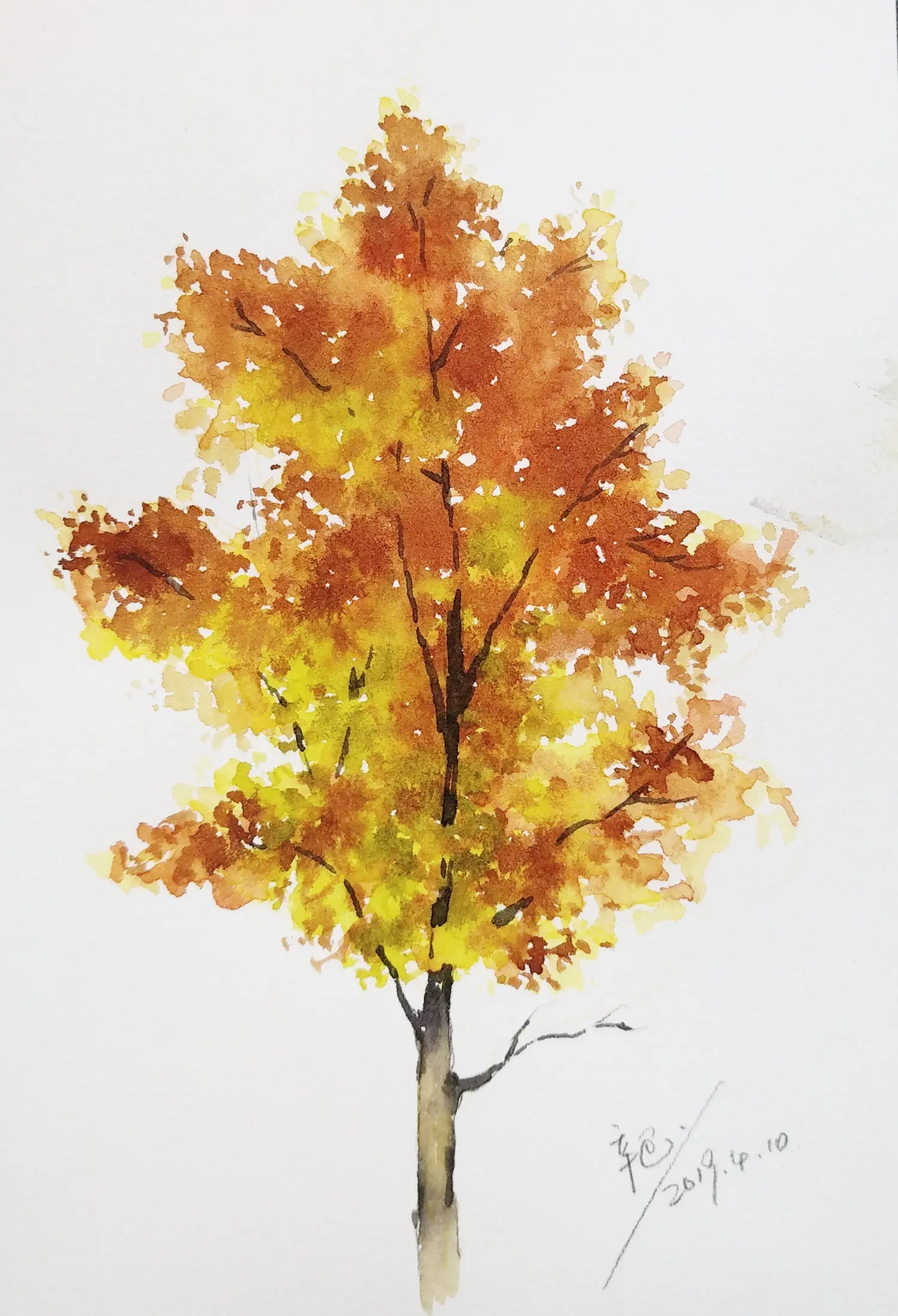 最近的手绘水彩大树
