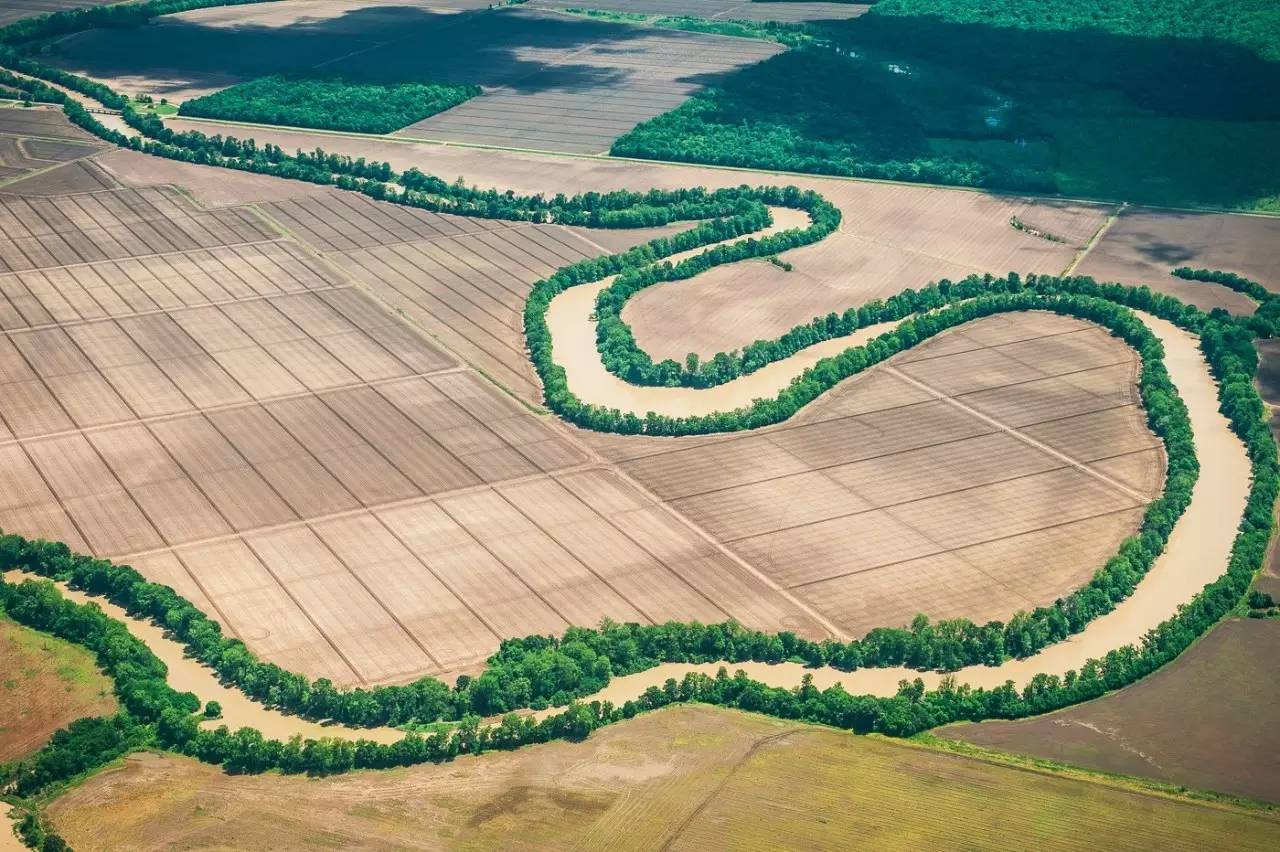 阿肯色州内,密西西比河边上的广阔农田.