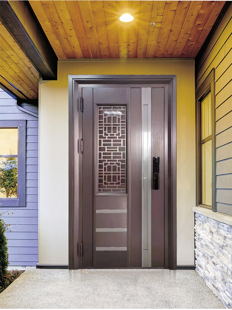 家用铭盾韩式入户双层防盗门电解锌板双色真铜烤漆进户门