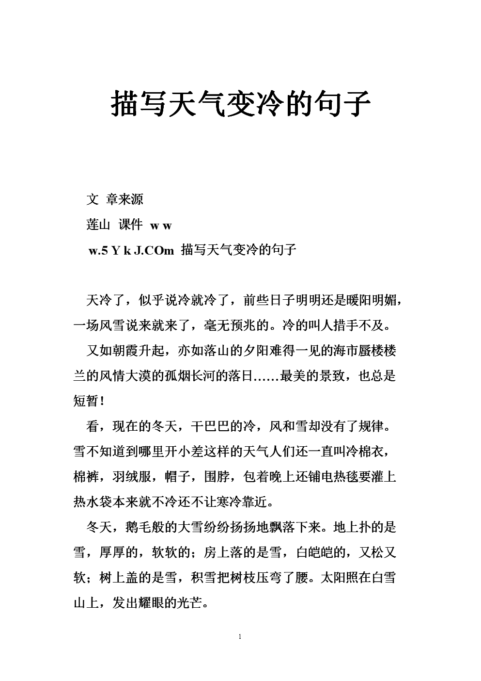 形容天气冷的经典句子.docx 7页