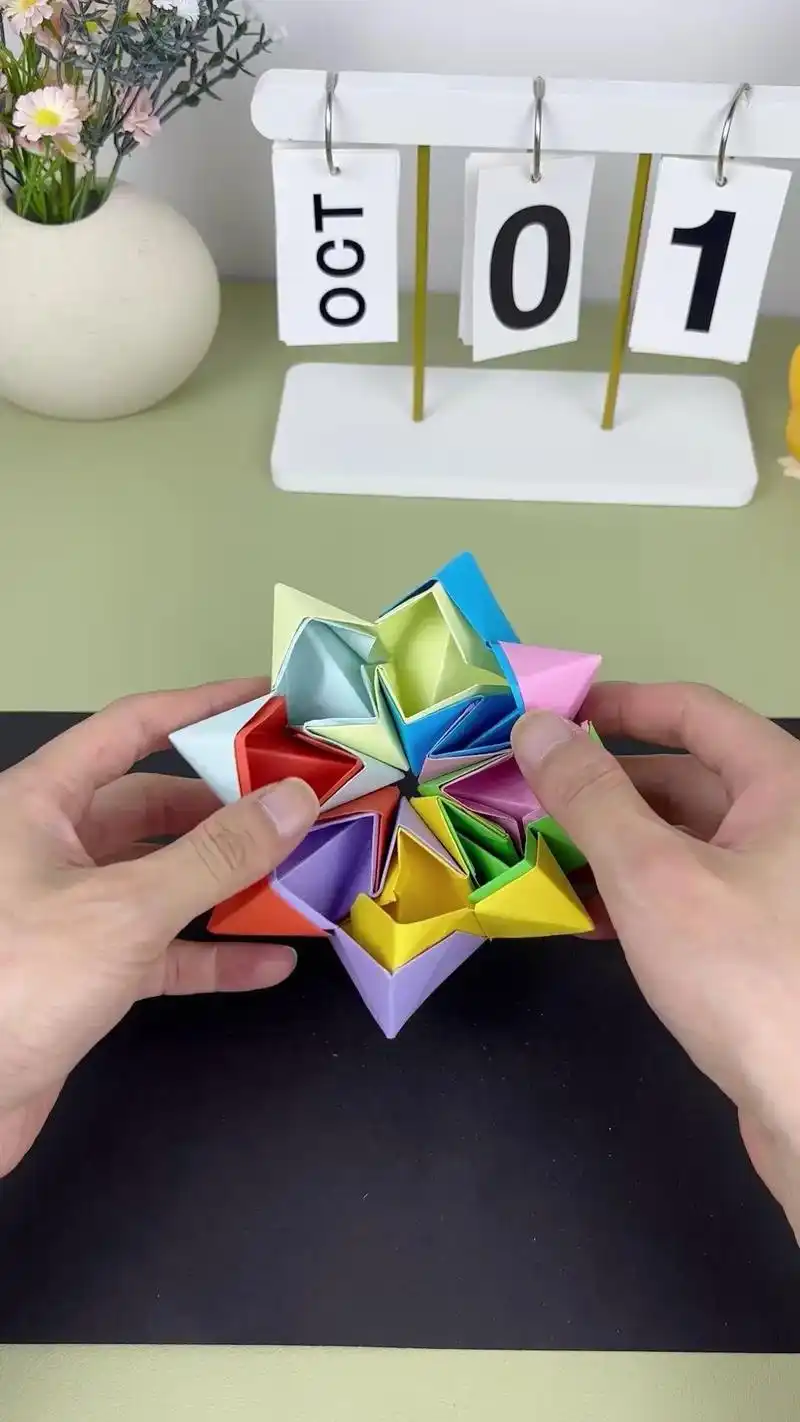 好玩的折纸,几个步骤折彩虹翻翻乐,创意手工制作