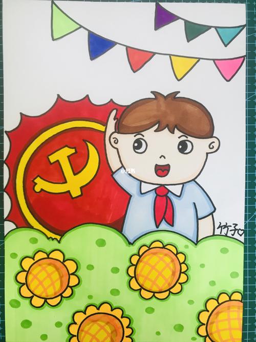 童心向党-建党100周年主题儿童画儿童画简笔画教程马克笔简