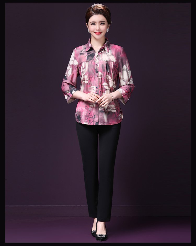 福玛玛2018秋季新款知性妈妈装中老年女装春夏秋装休闲长袖衬衣外搭