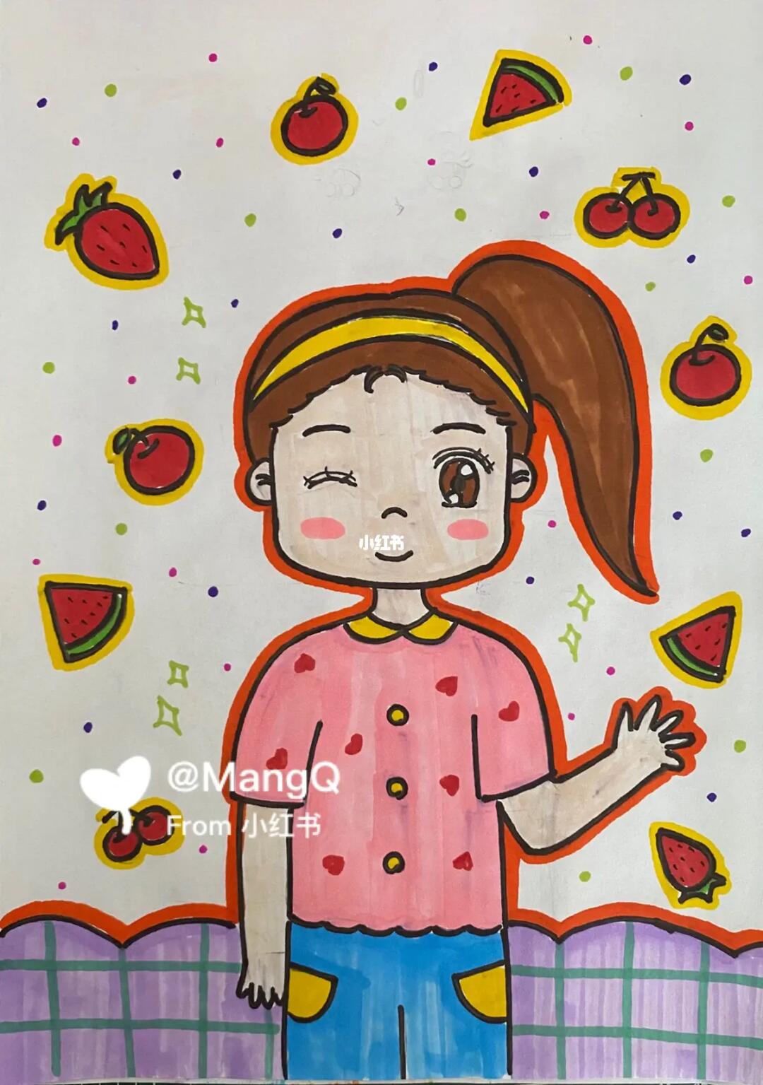 挑战100幅儿童画——第57幅【女孩自画像】