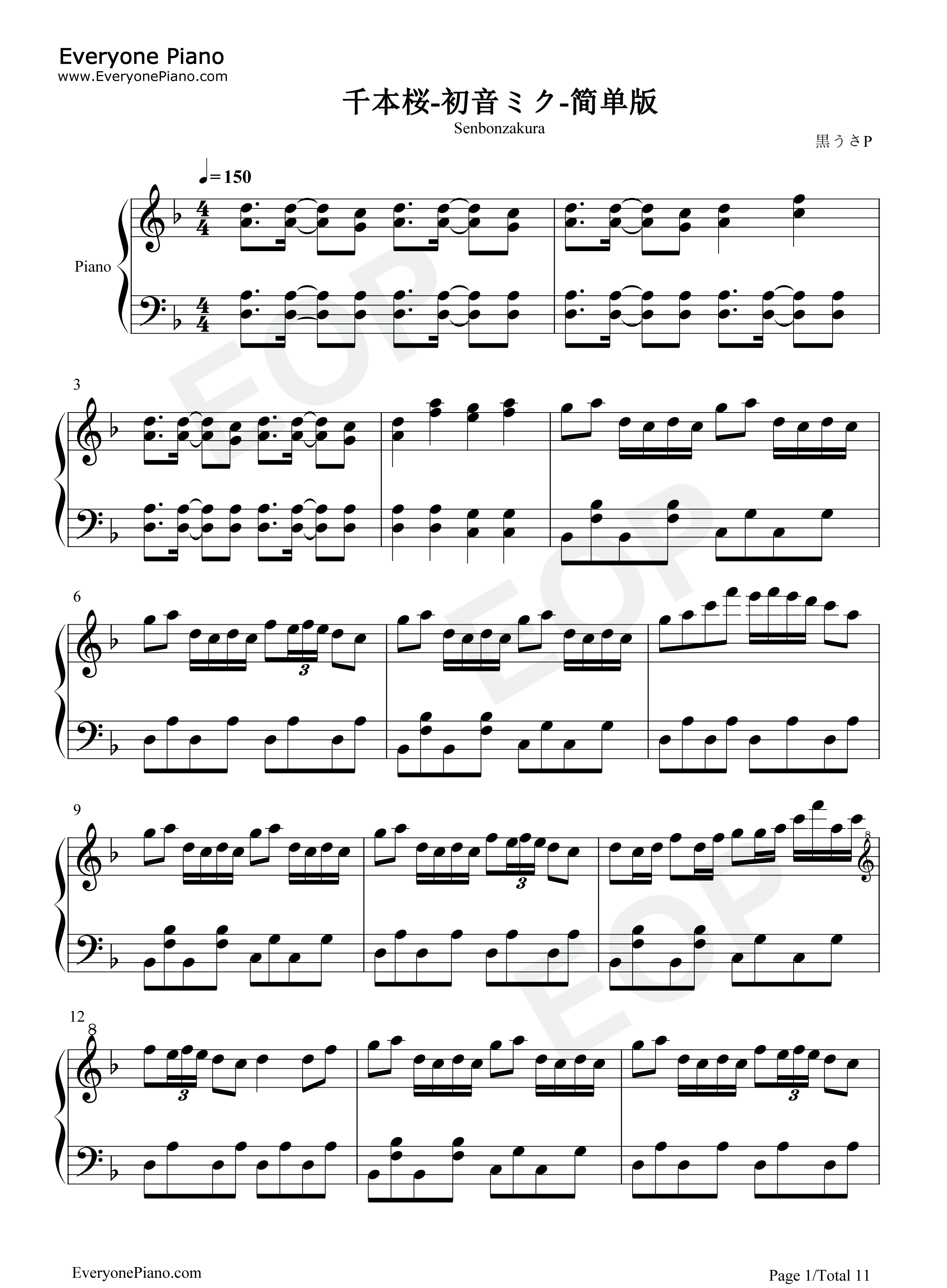 初音 千本樱 钢琴谱 钢琴双手简谱