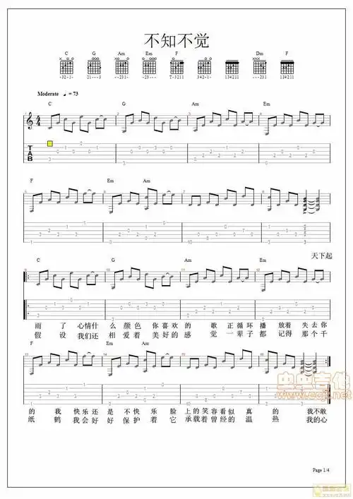 不知不觉jpg图片有歌词的吉他图片谱小贱吉他谱小贱吉他图片谱4张