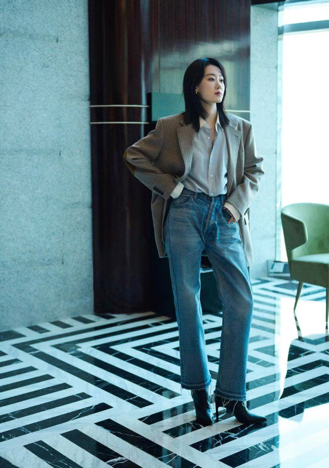 30 的张小斐,怎么这么会穿西装?_造型_整体_牛仔裤