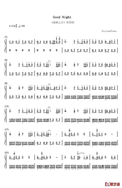 good night钢琴简谱-数字双手-班得瑞1
