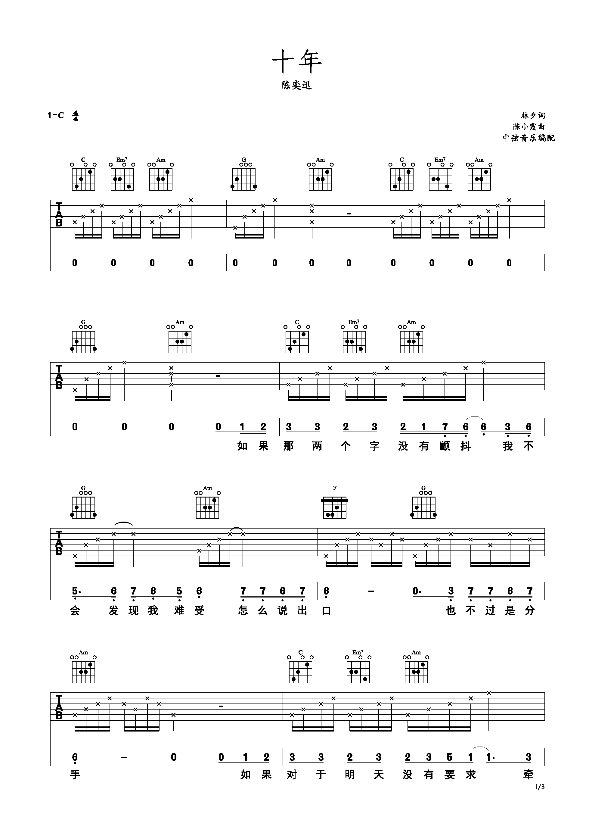 十年-吉他谱-c大调音乐网