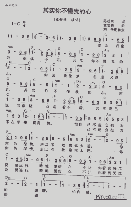 其实你不懂我的心_歌谱简谱_哆来咪123曲谱网