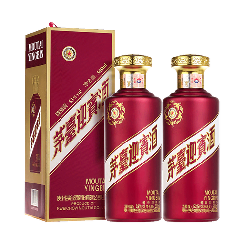 茅台moutai贵州茅台迎宾酒酱香型白酒粮食酒53度迎宾紫500ml2瓶