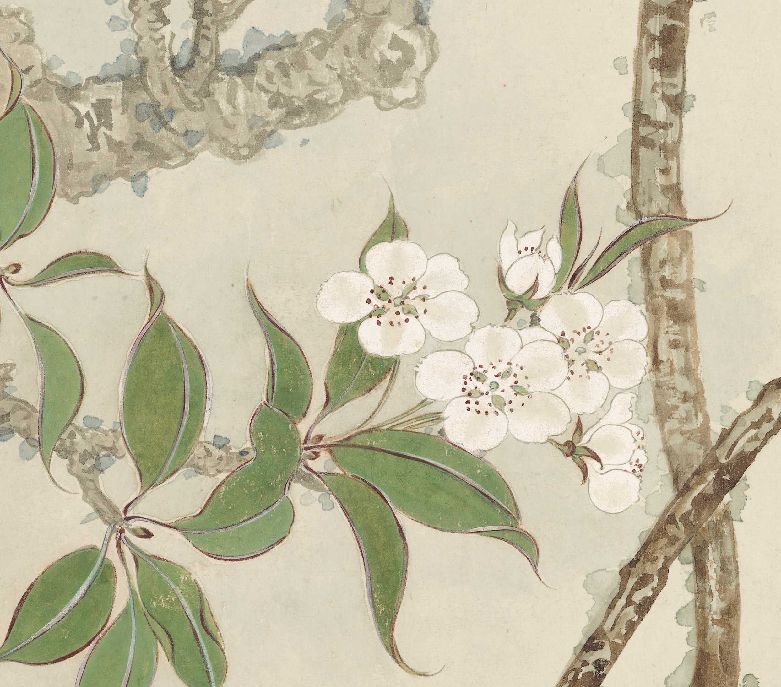 张大千梨花山雀工笔花鸟国画禅意简约中国国风国画