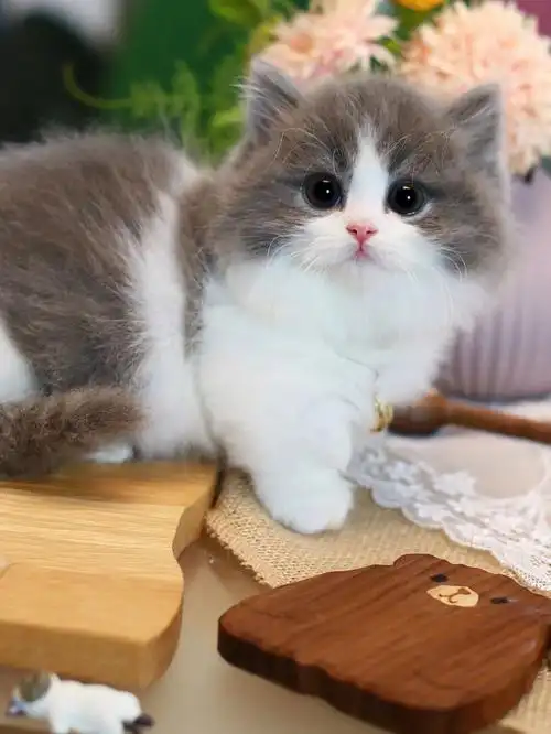 拿破仑矮脚乳白乳色长毛短腿幼猫曼基猫咪