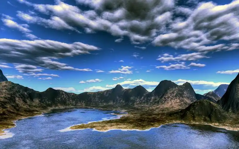 高清晰 河流山谷 电脑3d风景壁纸 1920 1200