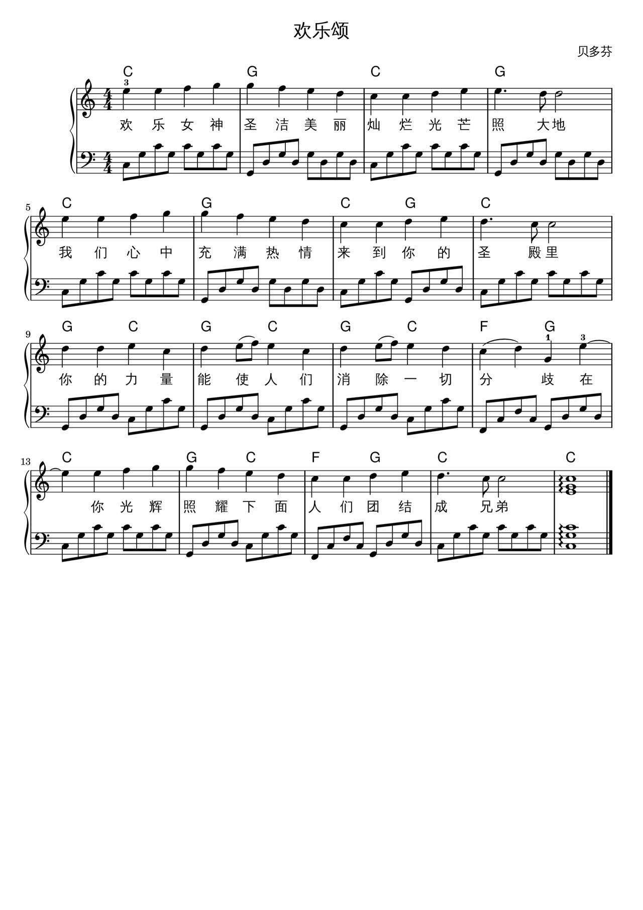 欢乐颂-最简单版-贝多芬-c调 -古典钢琴五线谱