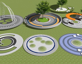 现代圆形树阵广场su模型下载【id:1069254】