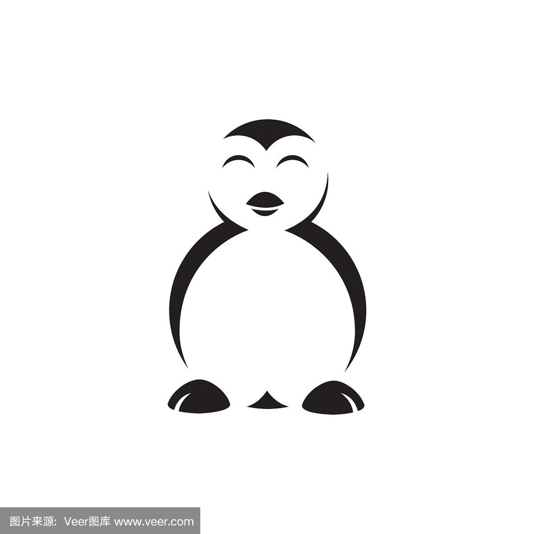 简单的黑白企鹅标志设计矢量符号插图.