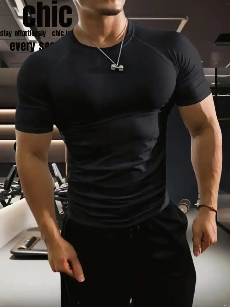 霸道肌肉男运动健身跑步训练速干短袖t恤