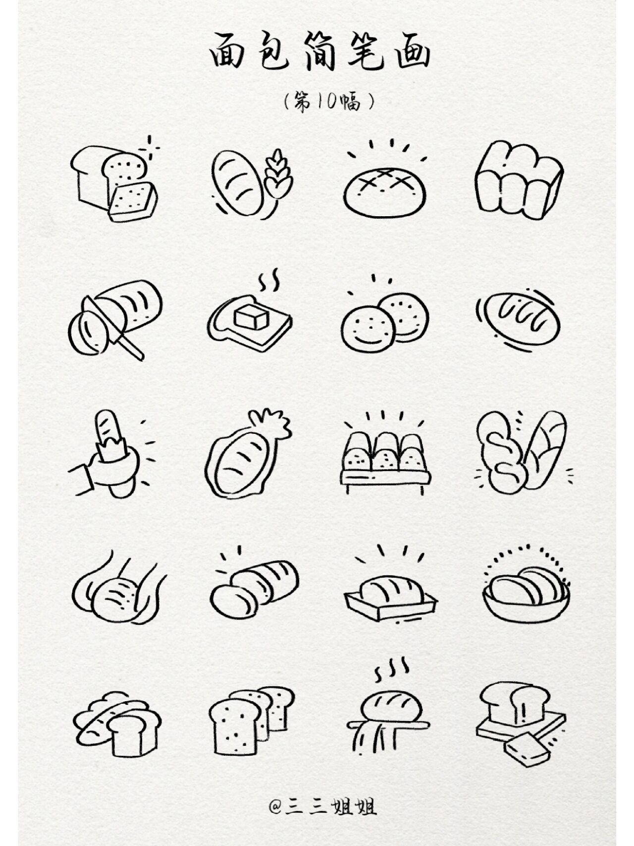 93超软糯97面包简笔画合集|手账素材 78今天分享的是铁铁点菜的