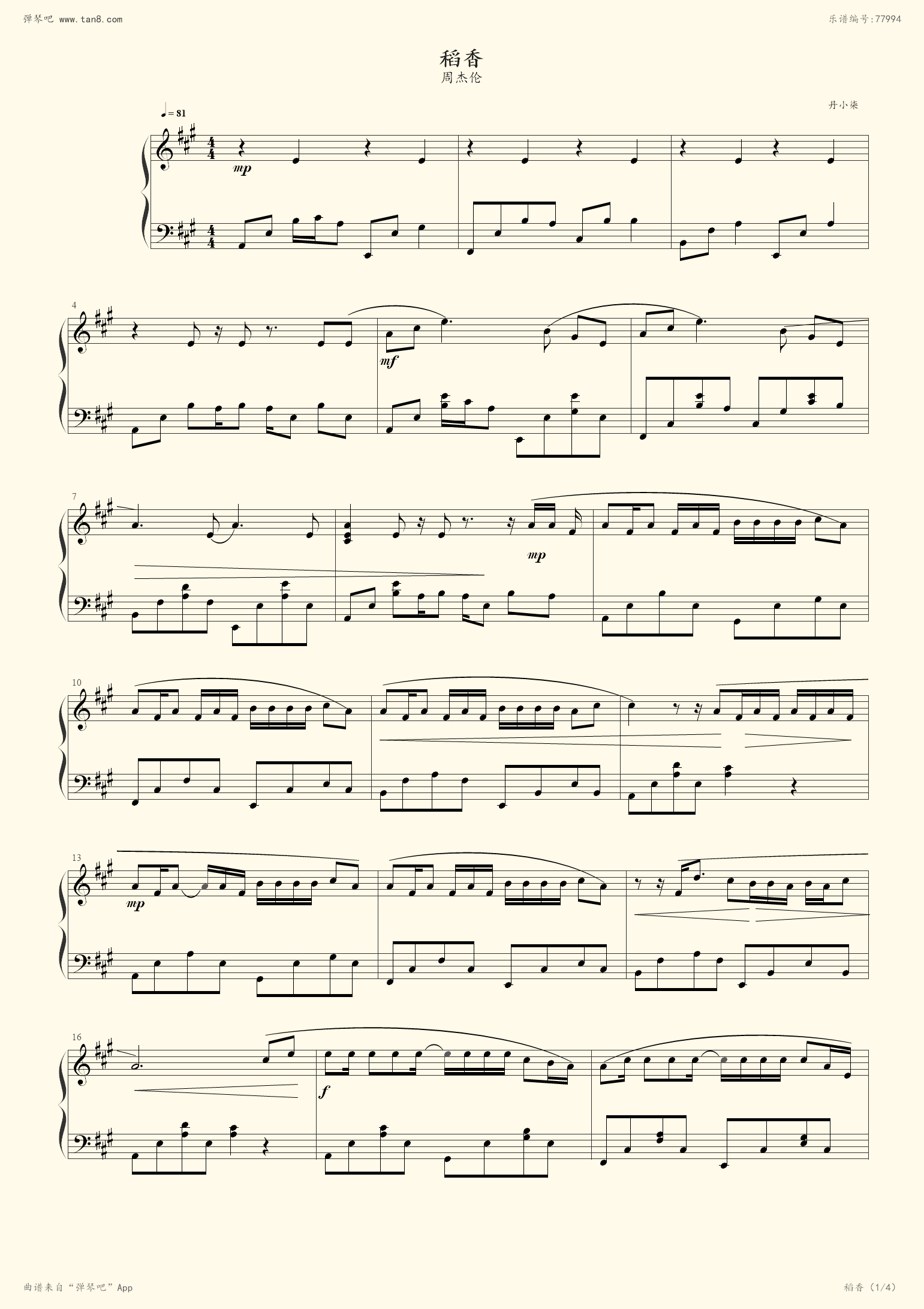 周杰伦《稻香》钢琴谱 带指法 - 抖音