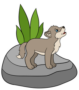 卡通动物小小的可爱的小宝贝狼的嚎叫声