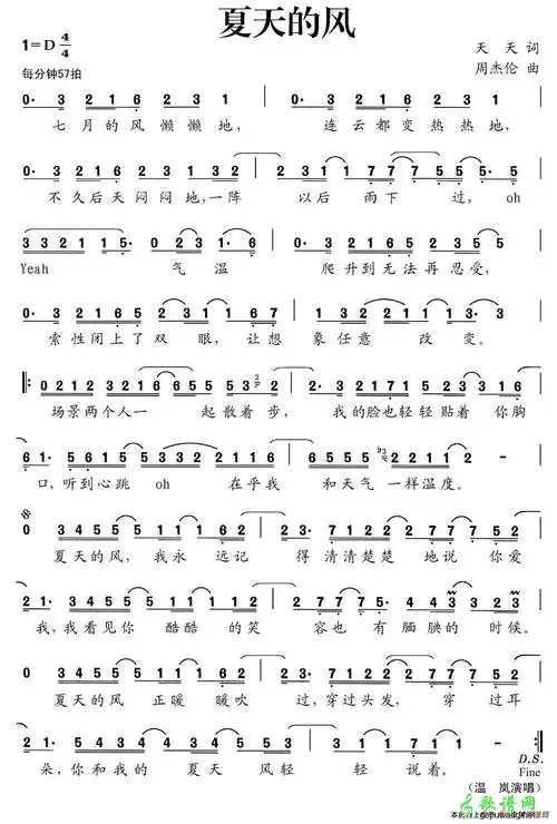 夏天的风_歌谱简谱_哆来咪123曲谱网