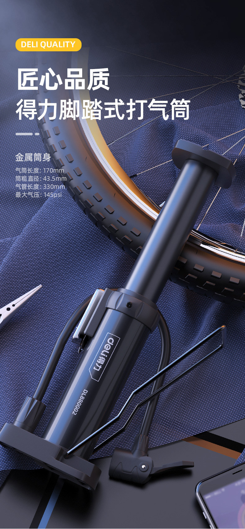 deli得力得力脚踏式打气筒