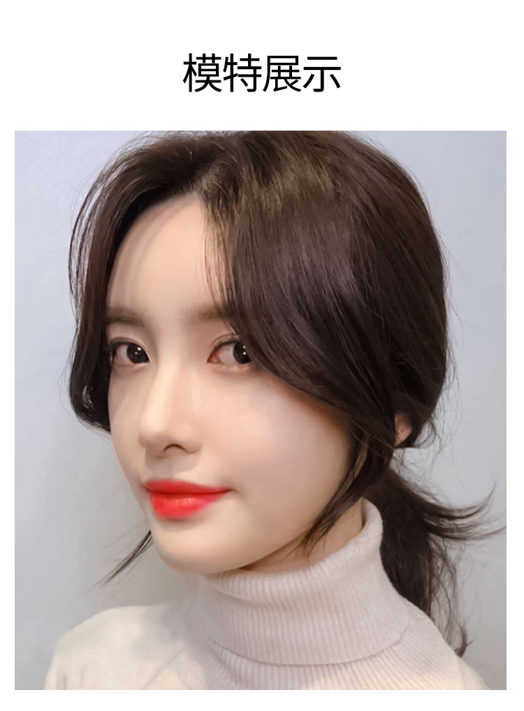 韩系法式刘海假发全真发手织中分两侧假发片修颜八字刘海女士蓬松