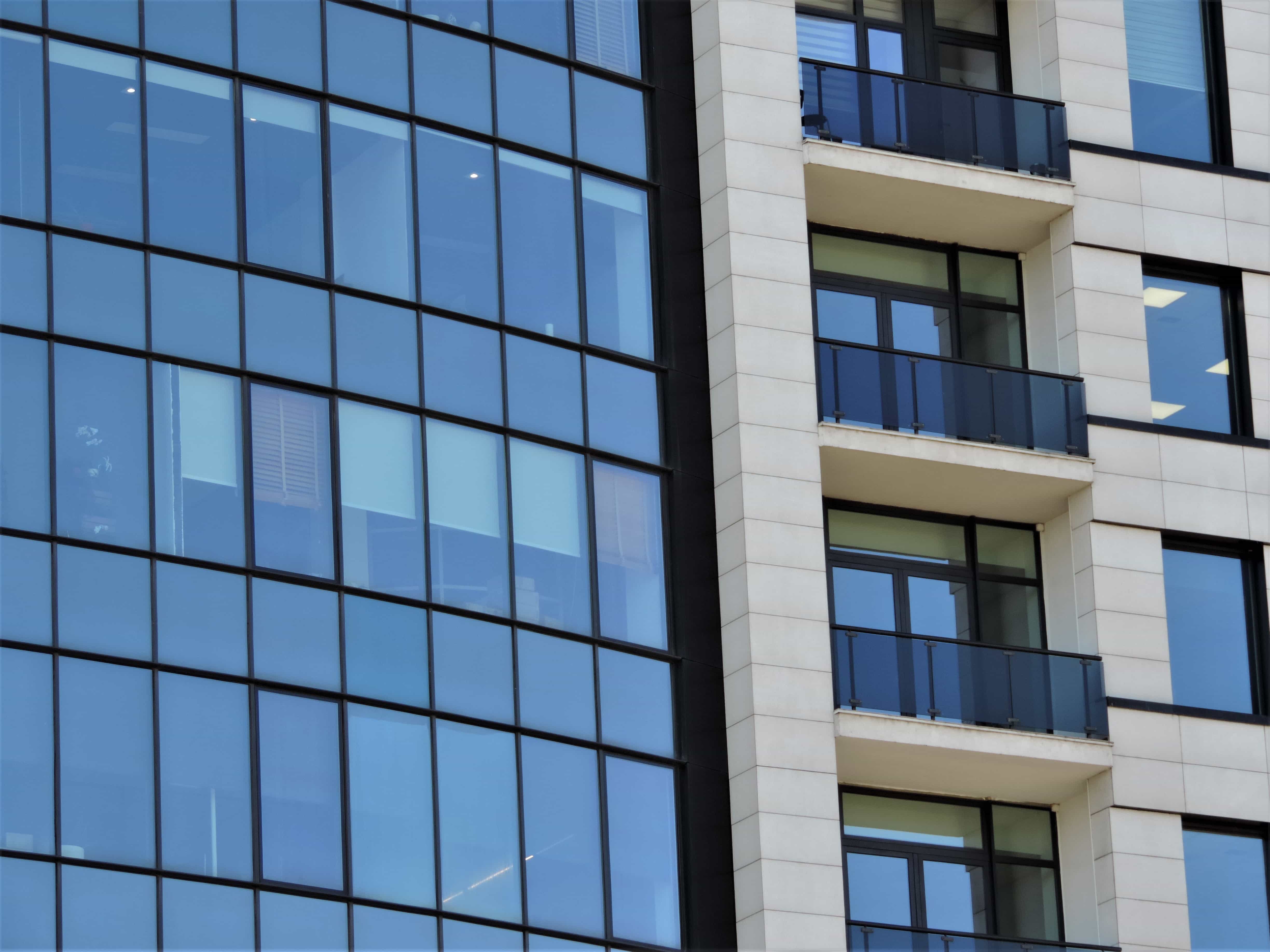 反射, 阳台, 构建, 立, 玻璃, 现代, 业务, 摩天大楼