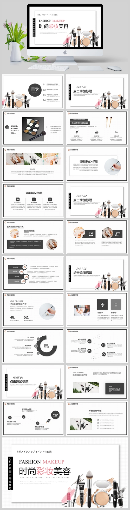 美容美妆整形美妆类宣传商务扁平风通用动态ppt模板素材方案