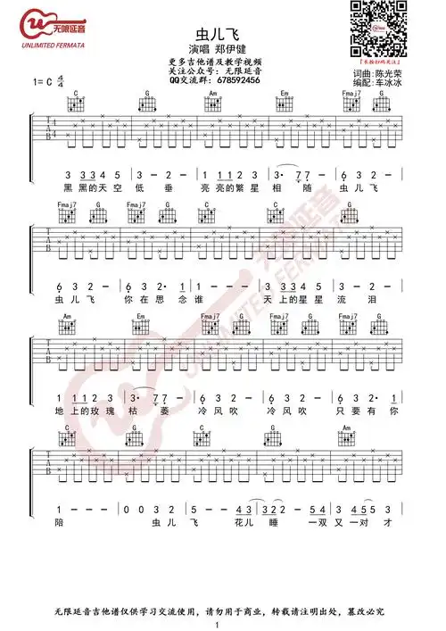 虫儿飞吉他谱入门c调吉他谱