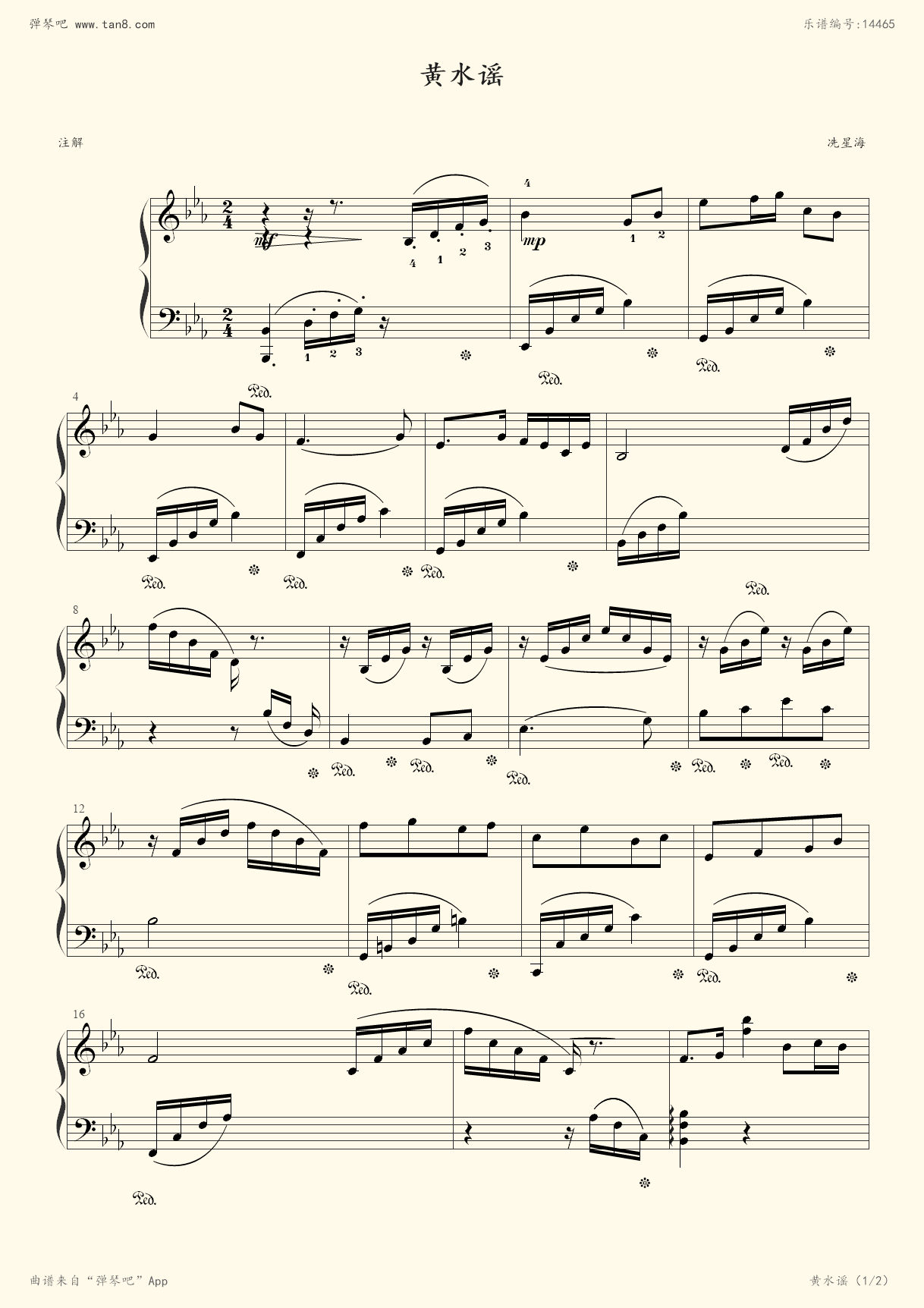 钢琴谱 - 黄水谣