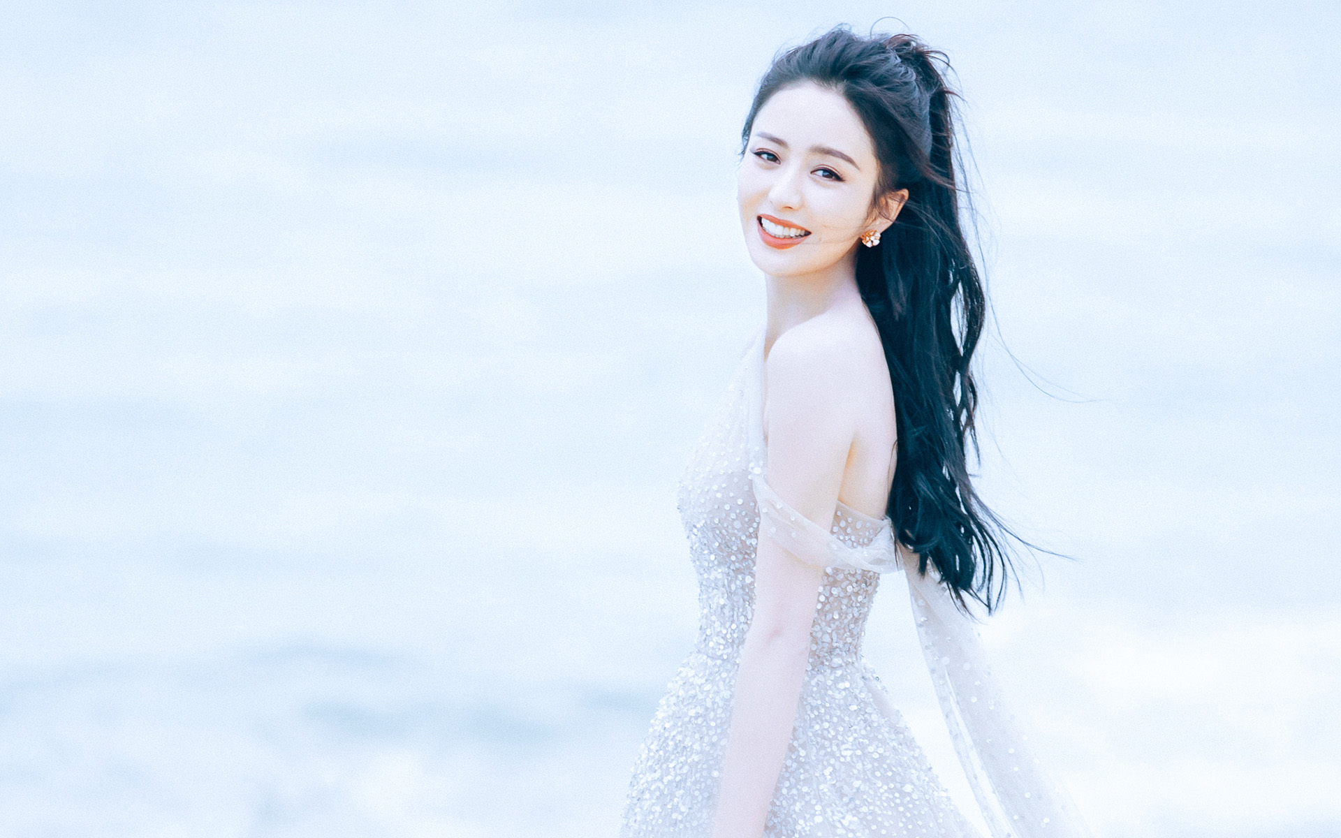 李沁海边仙气唯美高清桌面壁纸