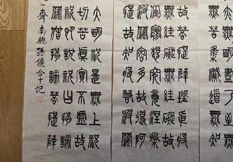 演员孙俪晒最新隶书《千字文》,笔法改良了不少,有尹秉绶神韵