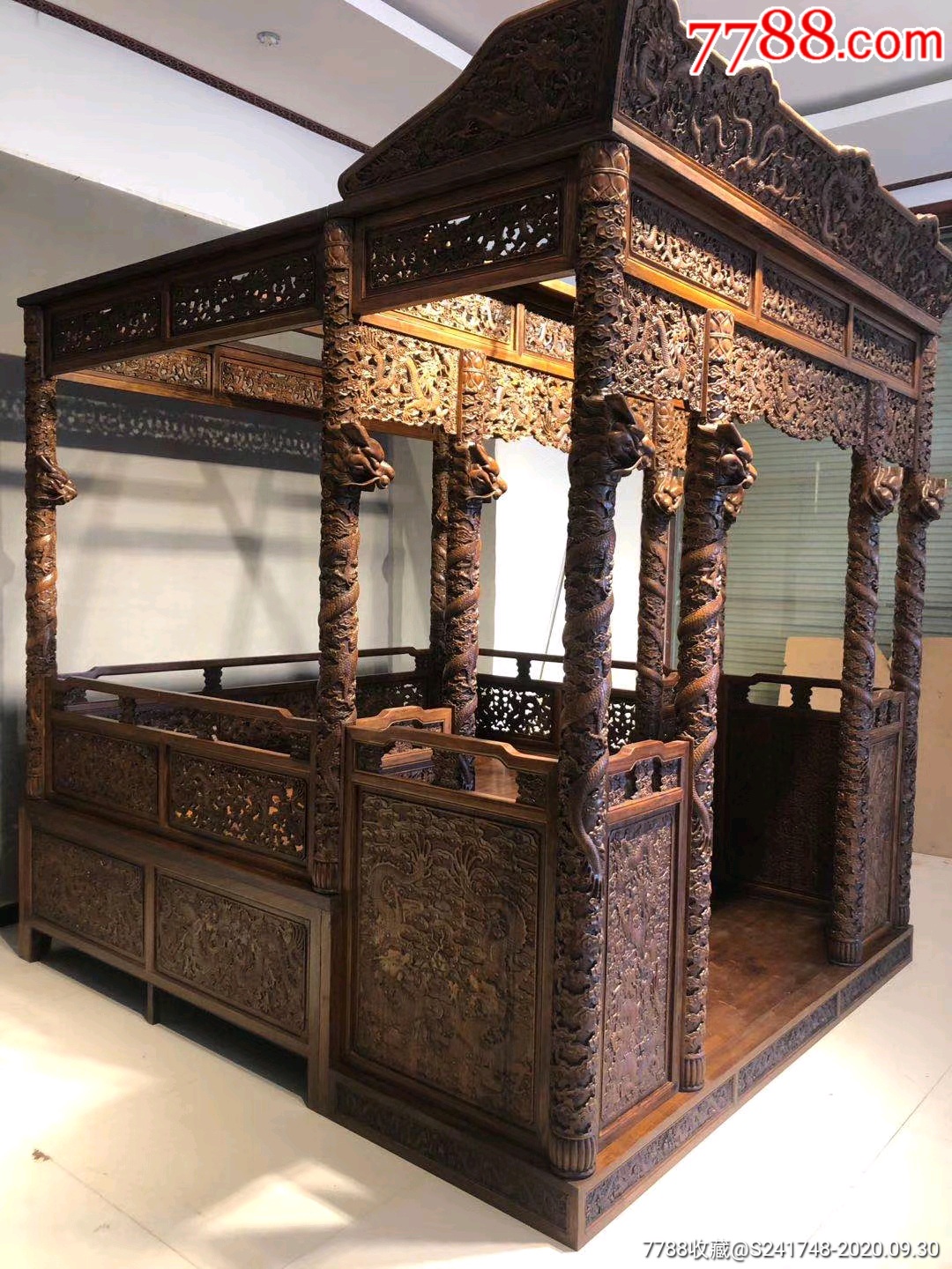 清代紫檀木千工拔步床