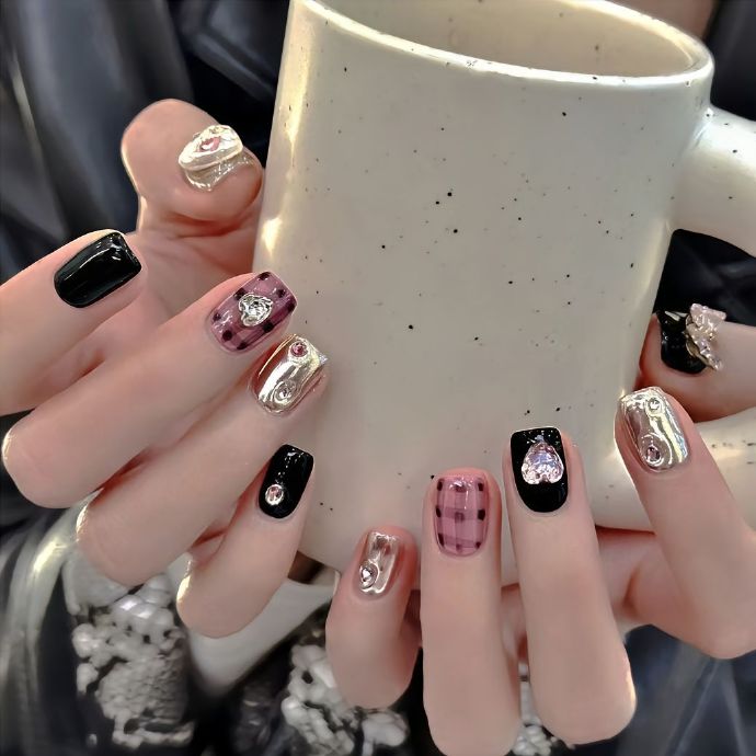 黑色短甲 黄黑皮天菜 不挑手又显白,四季都百搭的美甲款式