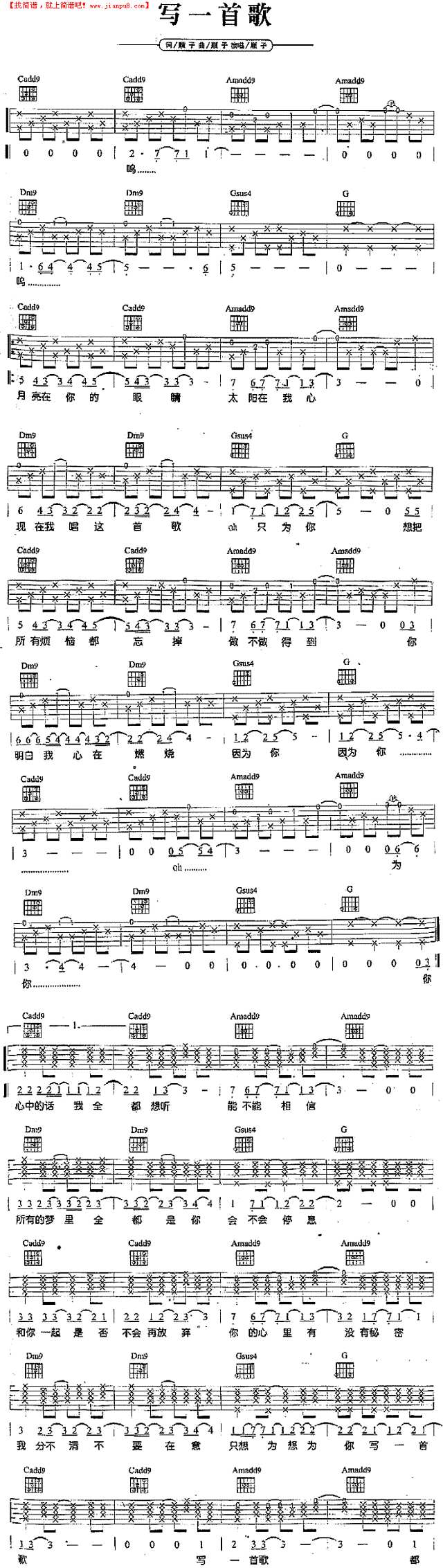 写一首歌_简谱_搜谱网