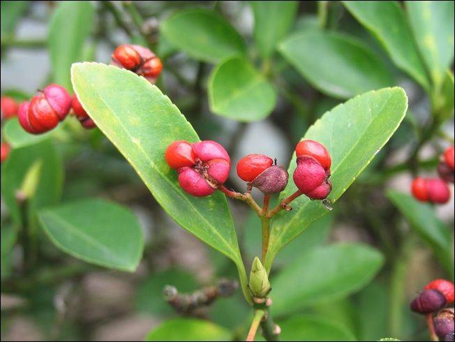 运气好的朋友有时会在森林里发现一簇簇火红的野生的"卫矛"科植物