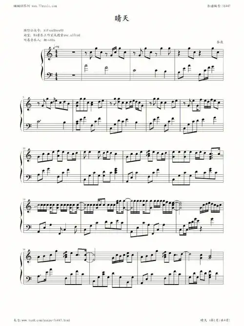 晴天钢琴谱|#钢琴谱分享 #五线谱译谱 - 抖音