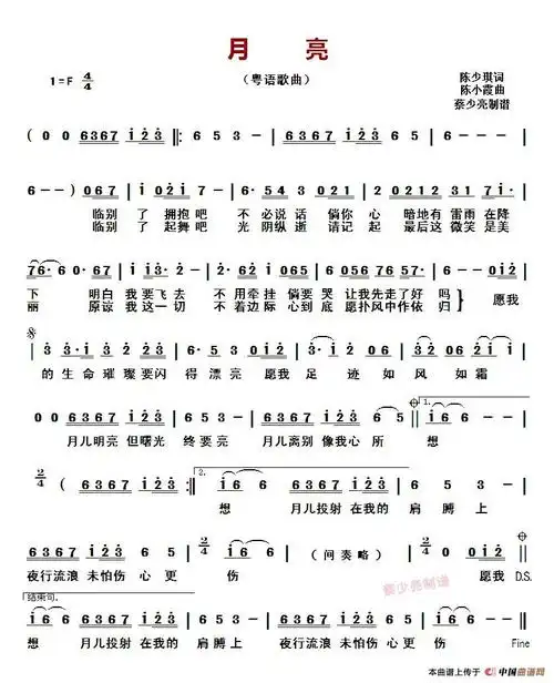 月亮(粤语)--陈慧娴_月亮(粤语)--陈慧娴简谱_月亮(粤语)--陈慧娴吉他