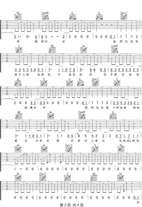 下首练习曲.#吉他谱把悲伤留给自己 陈升作词作曲并演唱,收录 - 抖音