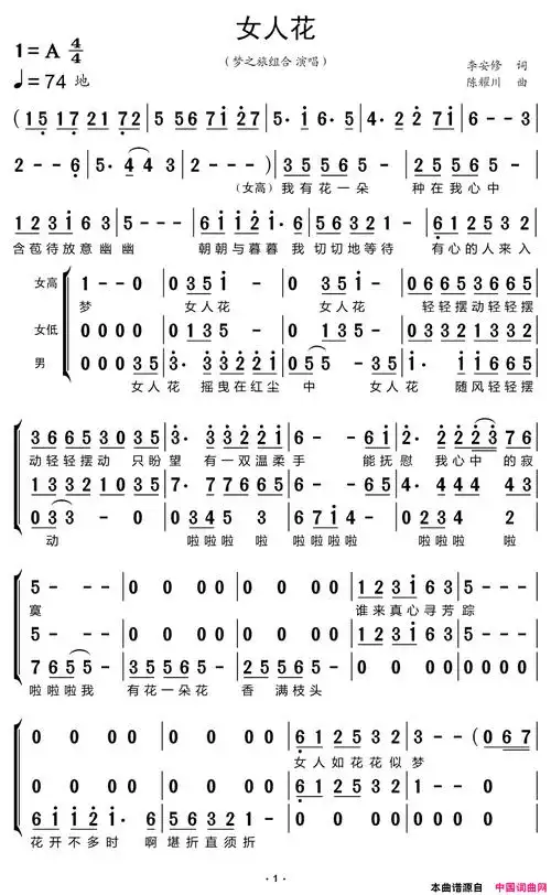 女人花简谱-梦之旅组合演唱-李安修/陈耀川词曲1