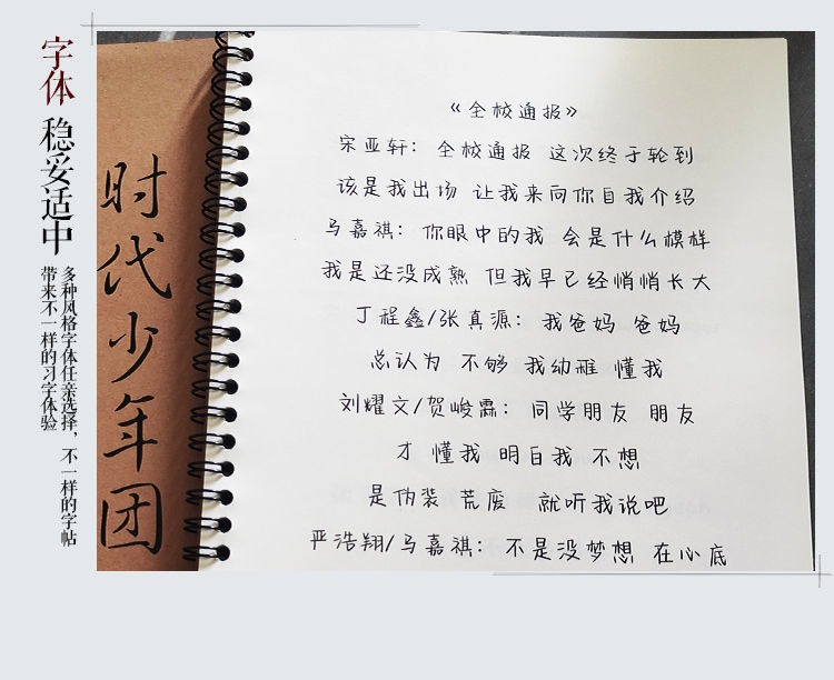 tnt时代少年团字帖歌词本周边同款情书翩翩体练字帖女生小清新者自