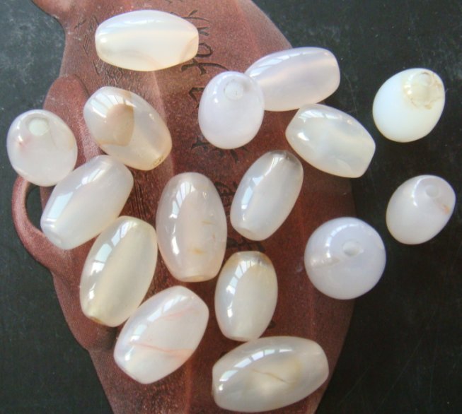 少见的白色瓷白色老玛瑙珠