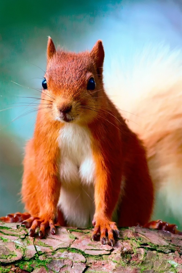 可爱的松鼠,棕,树,背景虚化 iphone 壁纸